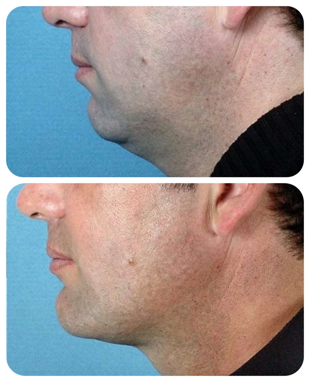 Το μικρό πηγούνι διορθώνεται με την τοποθέτηση ενθέματος σιλικόνης, το οποίο διατίθεται σε διάφορα μεγέθη.
